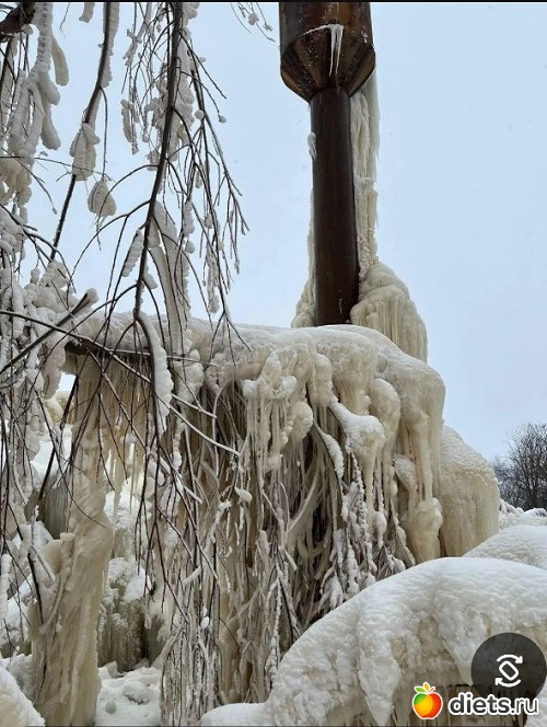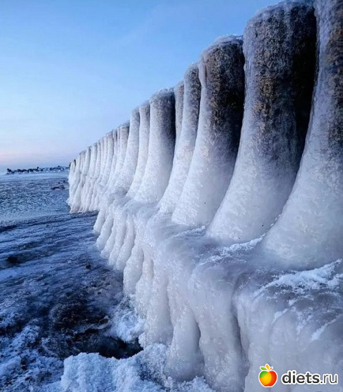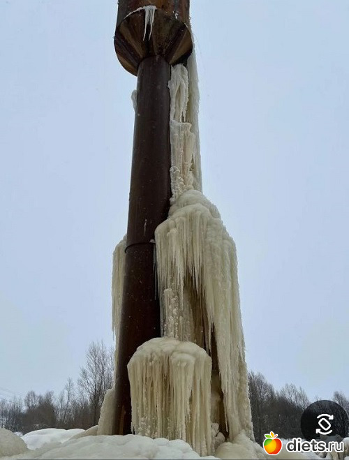 Шутит не только зима. Небольшое ледяное шоу для вас от водонапорной башни в одном из районов Калининградской области.