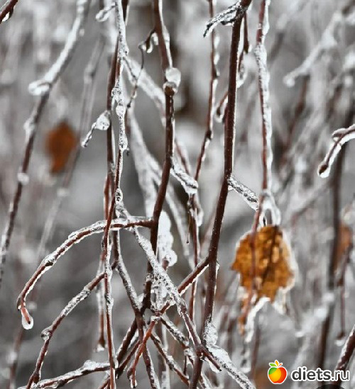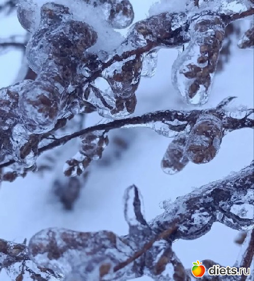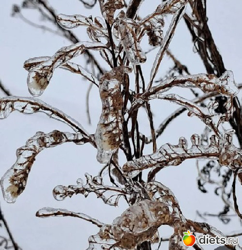 Зима и пошутить любит. Смотрите, какая красивая глазурь на ветках.