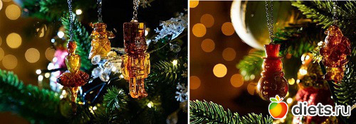 Калининградской области создали ёлочные игрушки из янтаря. Изделия выполнили в виде сказочных персонажей: Деда Мороза, Снегурочки, Щелкунчика, Снеговика, Санта-Клауса и Мышиного короля. Также среди изделий — шишка и балерина.