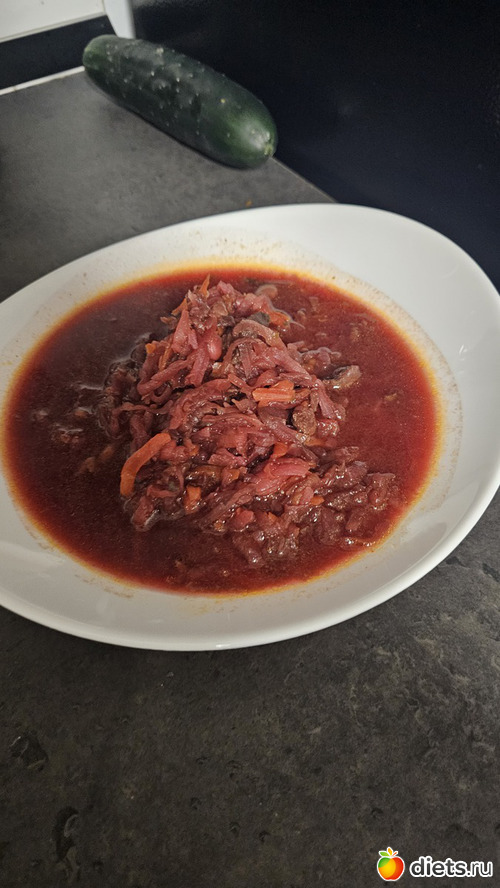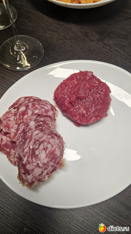 Борщ (полуфабрикат, приехал с нами из Литвы), тартар, салями, паста с курфиле, винченцо б/а