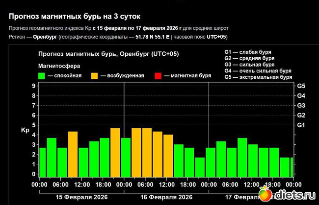 16 февраля, геомагнитные колебания сохранятся. Ожидается, что сила геоударов составит от трех до пяти баллов. Такие показатели могут вызывать головные боли, скачки давления и общую слабость у чувствительных к изменениям погоды людей.