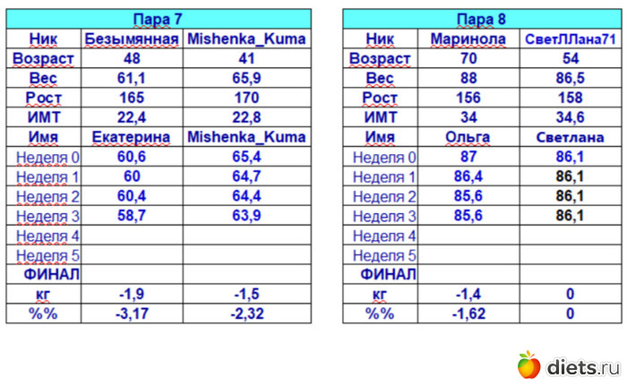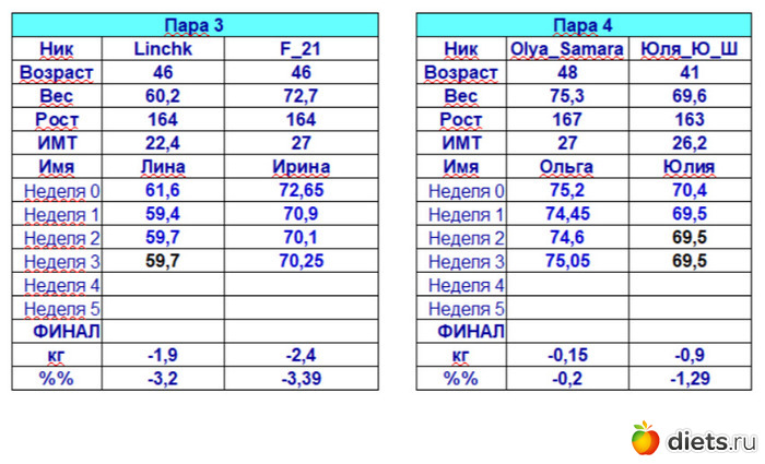 Diets.ru 106-я Дуэль! Четвертое взвешивание (17-23 февраля). Дамы, к барьеру!