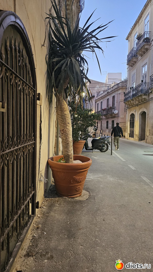 Распросил все про наши дальнейшие планы. Мы собирались выехать рано, заехать в Ното, там погулять, потом в Сиракузы. Но он нам сказал, что ни в коем случае нельзя оставлять машину с багажом без присмотра, даже на платной стоянке. Сопрут 100 %. Его вариант был: освободить помещение в 11:30, оставить машину с вещами на его участке еще на несколько часов, пойти погулять по Катании, переехать в Сиракузы точно к тому времени, когда можно зачекиниться, оставить там вещи и тогда уже ехать в Ното. Ну мы покивали, но не хотели его расстраивать, говоря, что Катанией уже сыты по горло и ни часа лишнего здесь провести не хотим