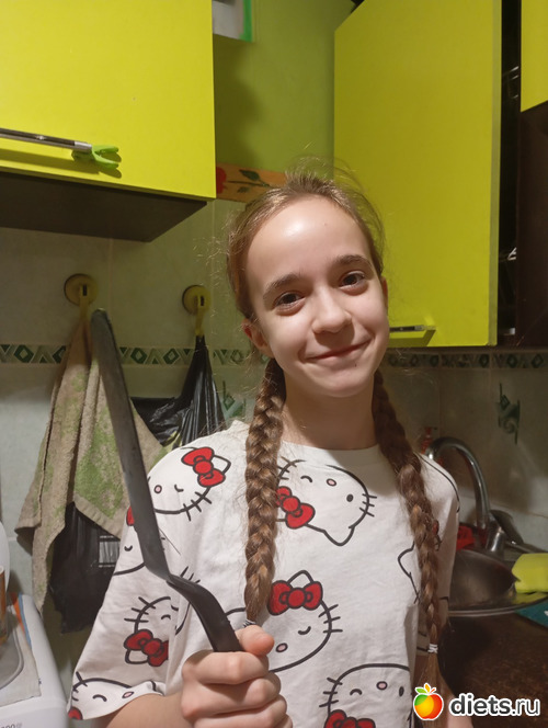 Я его погладила, обняла. Разделась и пошла умываться. Потом пошла в зал немного отдохнуть. Отдохнула. И потопала на кухню заводить тесто, Маруся и Юки прибежали за мной следом мы завели тесто и Мария попросилась сама печь блины. Я Марии показала как надо и что делать и вот я сидела на стуле, а Мария пекла блины.