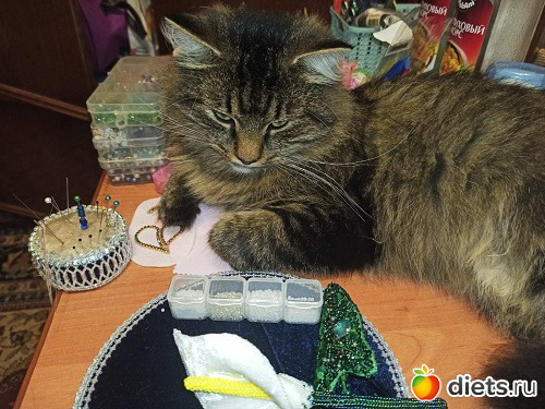 Обожает, когда дочь занимается рукоделием, особенно бисером. Помогает, думаю, вы понимаете, как )))