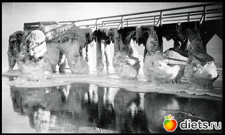 Реликтовые пни, сваи и камни нарастили причудливые ледяные формы. Когда еще такое чудо увидишь? Говорят, такие морозы в нашей области в последний раз были 25 лет назад. Я её вспомнила, это была очень тяжелая зима, потому что я в то время была челноком и работа моя была на улице.