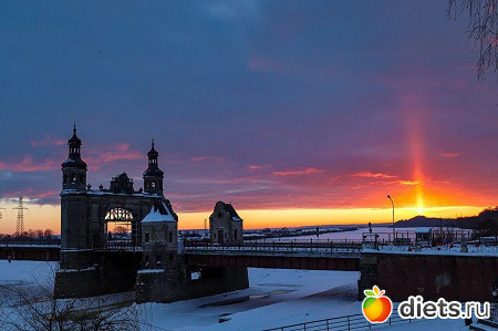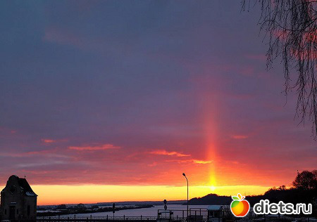 Солнечный столб необычный и красивый.