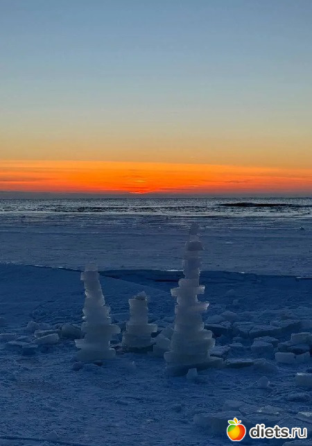 Это море, закат. Полюбуемся на последние дни. Кое-где снег уже смыло. В где-то еще стоит. Летом вспоминать будем.