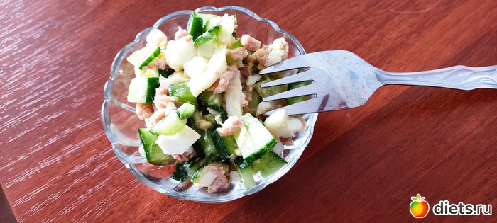 Готовила картошку фри с сардельками для мужа, сама поела оставшийся салатик. Вкусный, но из холодильника, как то прям горло перехватило немного.