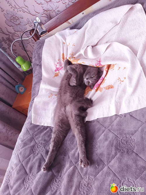 На кровать специально кладу старое полотенце, любит спать на солнышке