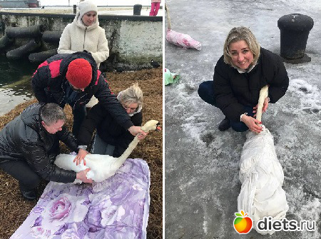 А это вчера же в моем чате Макса фотки из соседнего городка, Балтийска, как они своих лебедей спасали. Думаю, тоже не впервые.