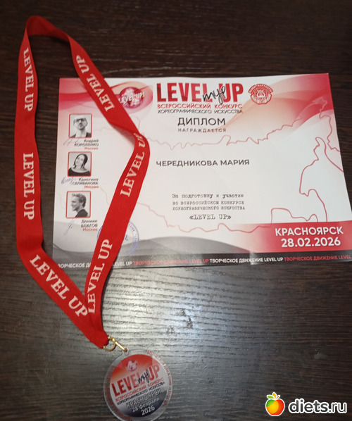 Мария ещё не приехала с конкурса. Я поужинала. И через час Мария приехала домой. И привезла диплом и медаль 🏅.