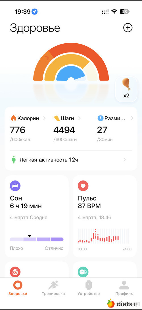 Сегодня без спорта. Смарт часы во время экзамена пришлось снять, поэтому шагов и калорий меньше, чем обычно показывает.