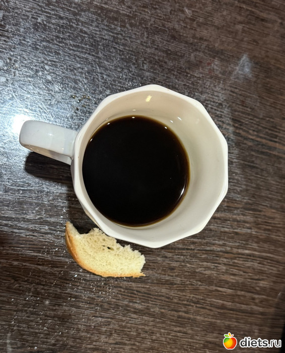 Опять подсушенный ломтик батона до сухарного состояния и кофе)