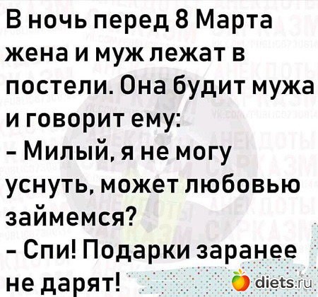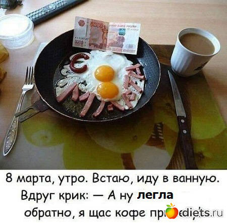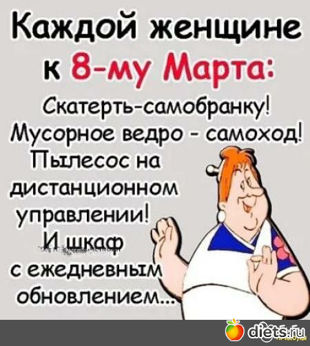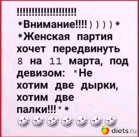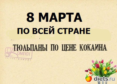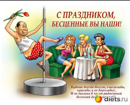 Дочь поехала в магазин и удивилась. Кругом толпы и к кассе толкают нехилые тележки. Причем, делают это только женщины. Такое впечатление, что лучший подарок нам на 8 Марта - обожраться всем так, чтоб до конца недели икалось и пучило.