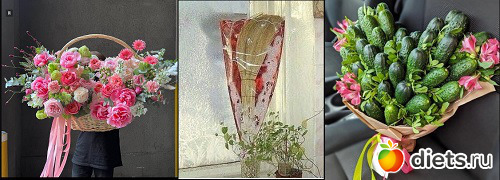 Про выбор букета можно было даже не спрашивать - конечно же из огурцов. А лучше из шашлыков... Хоть помечтать о таком...