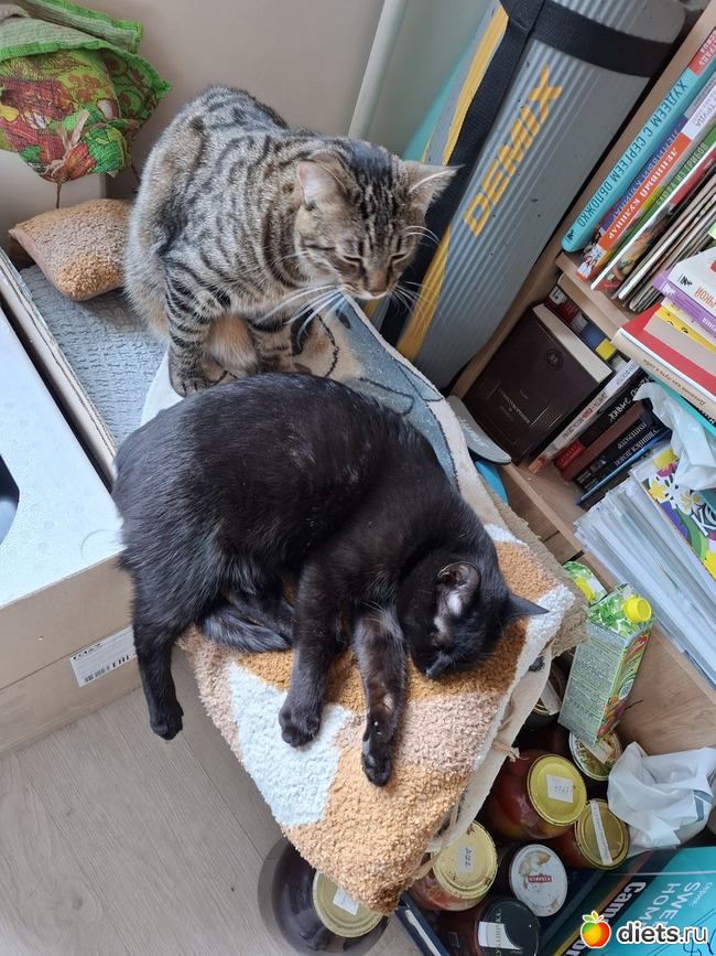 У Буси на солнышке шерстка так красиво переливается в очень темный шоколад. А у Барси в глазах вся мировая скорбь по несъеденной скумбрии.