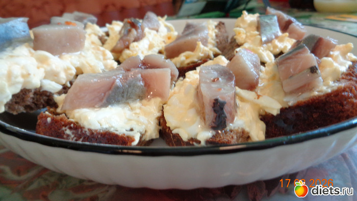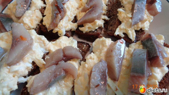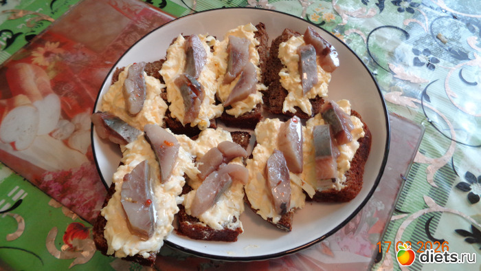 Пресервы (или 1 филе слабосоленой сельди) — 200 г.