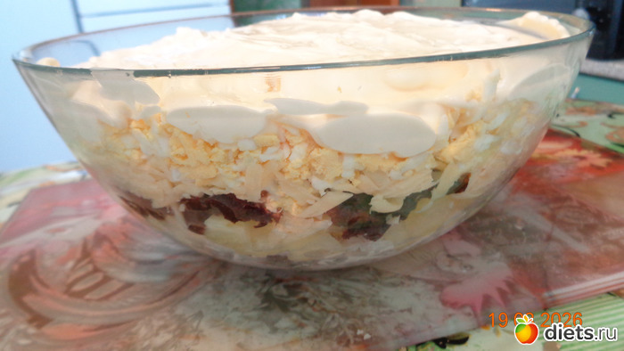 7. Смазать все майонезом.