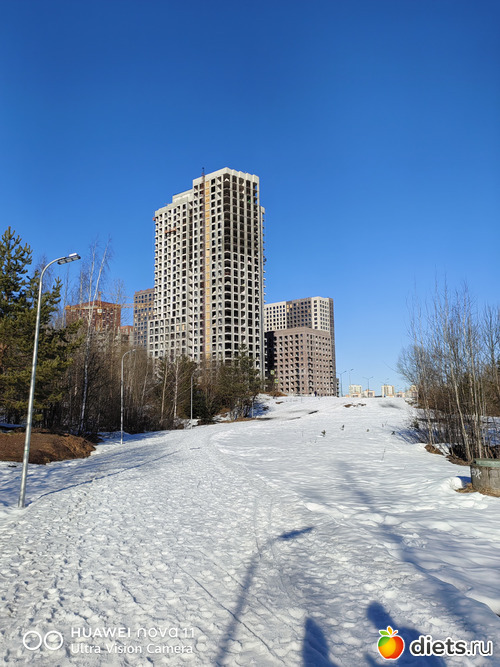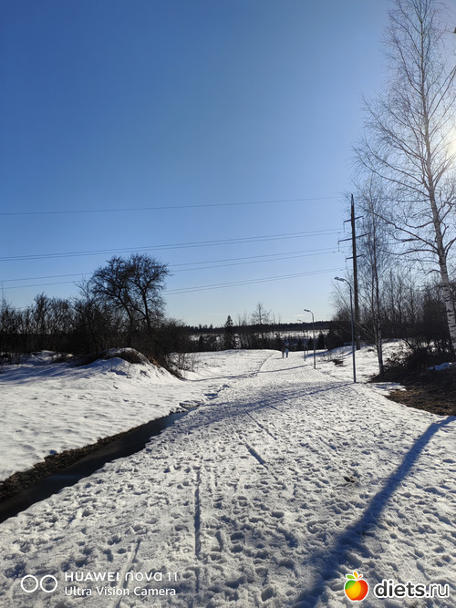 Асфальта между районами пока нет, снег вроде тает, но там же не чистили. Оно, конечно, понятно, это вообще-то лыжероллерная трасса