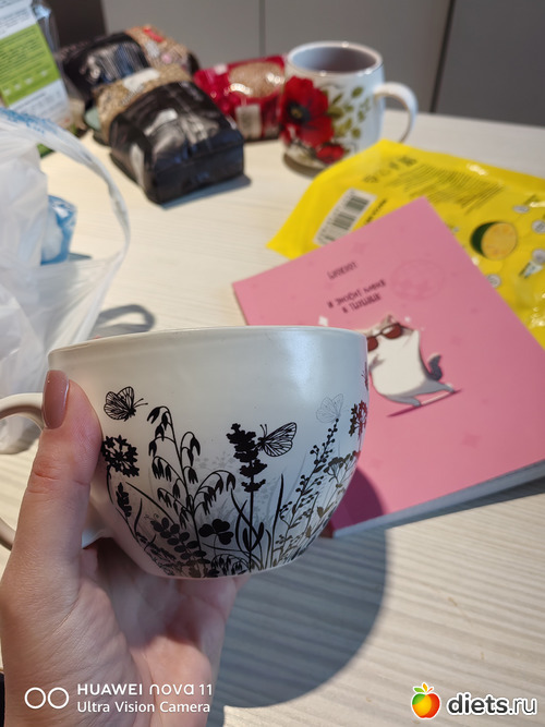 Я себе там купила кружку новую. На поллитра