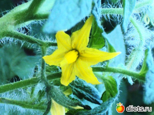 Вот такой цвет у помидора... на ранних сортах уже помидорики...