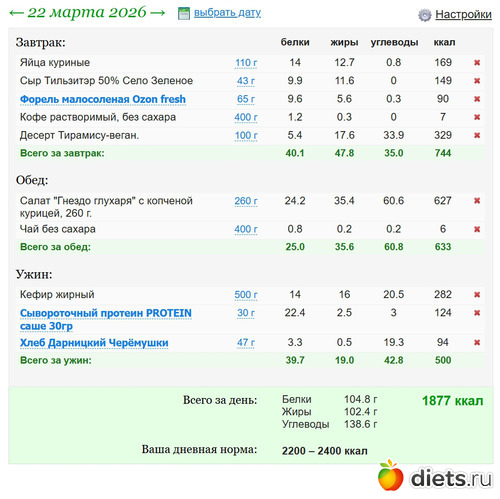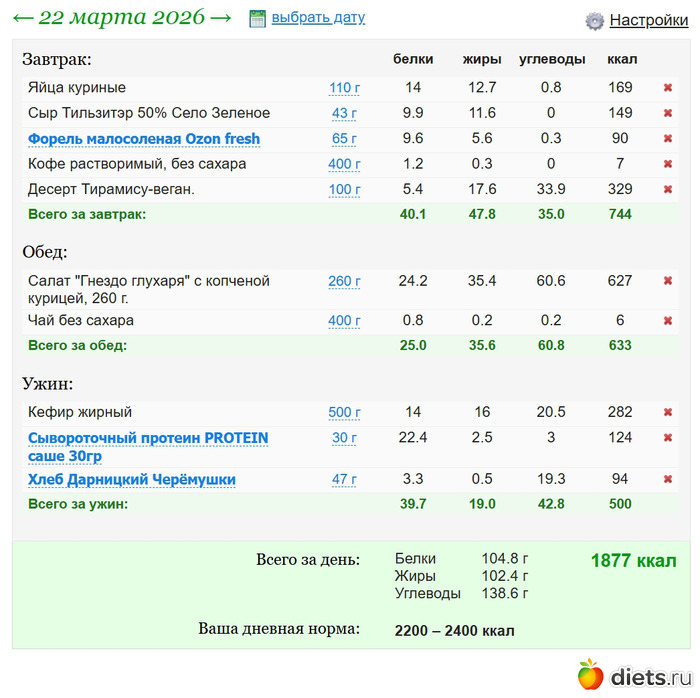 Короче, я явно делаю что-то не то или у меня шизофрения, ем и не в курсе что, когда и сколько. Потому что на бумаге получается, что среднесуточно ем на 1600, а по науке, расчетам и законам физики о сохранении энергии около 2800. Мои лыжи не едут, да и я плохею умом к старости, видимо.