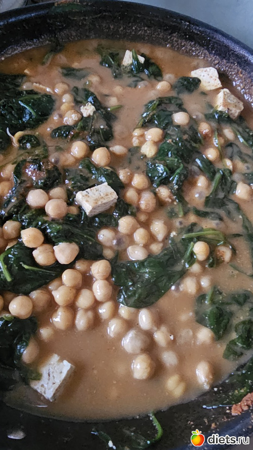 У: гарам масала (нут, шпинат, халуми, сливки, приправа гарам масала), копченая рыба
