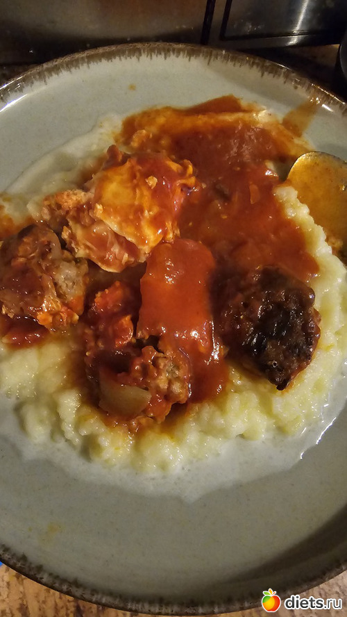 О: картофельное пюре, котлетки из филе индейки в томатном соке
