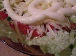 3. По бокам порезанные не слишком мелко помидоры и огурцы.