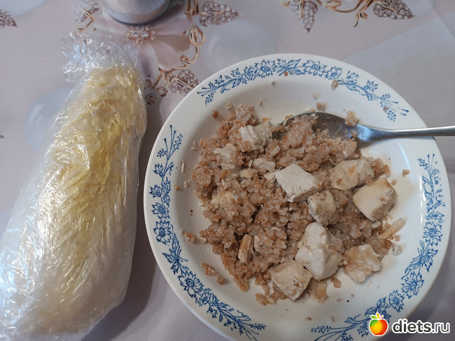 Полдник: пшеничка 40г до варки, грудка индейки 100г готовой, 7-8 г растительного масла, китайская капуста листами (4-6 шт в зависимости от размера, её не взвешиваю).