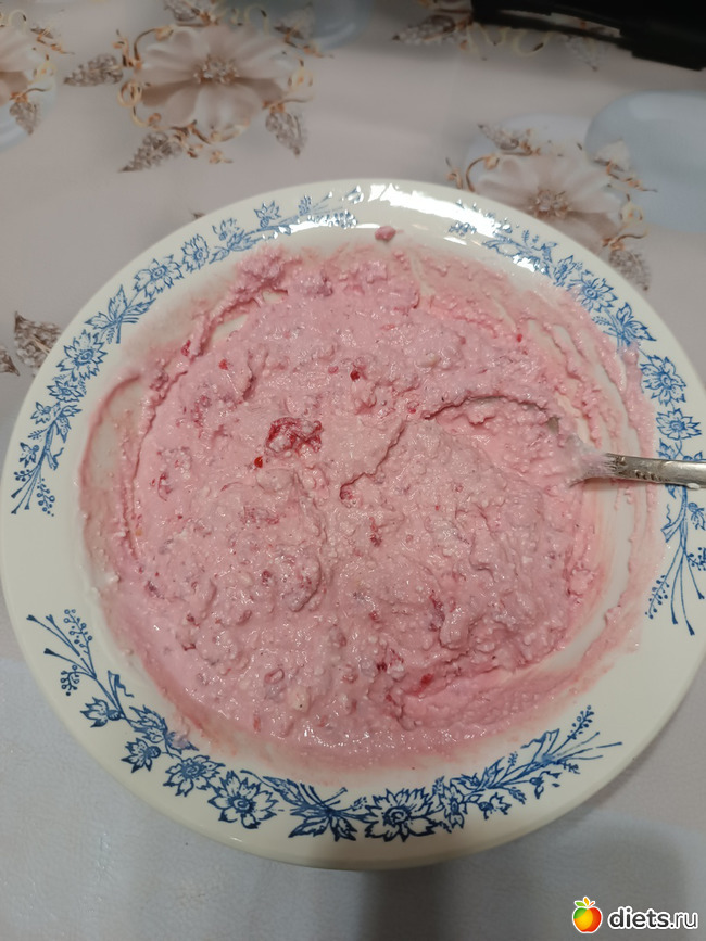 Ужин: 180г творога 5%, сметана 15% 50г, малина мороженая 100г