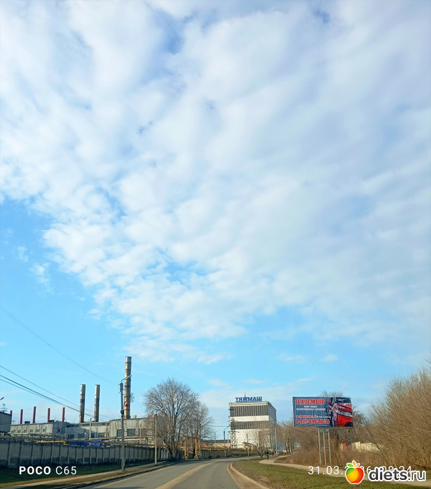Март заканчивается чудесным весенним солнечным днём, удивительно тёплым и с потрясающими небесами.