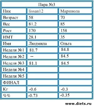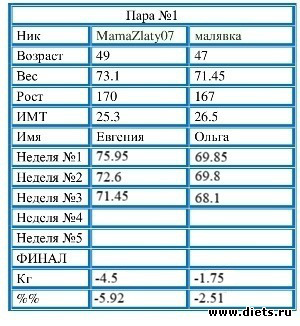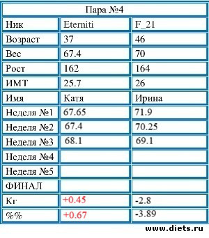 Diets.ru 107-я Дуэль! Четвёртое взвешивание (31.03 - 6.04)
