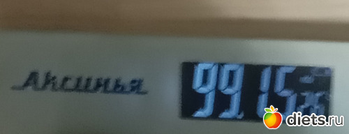 Встал на самой средней точке. Как мой вес который у меня был 106 кг. Да я там питалась одними булочкам, вкусняшками, конфетами, колбасами различными и всякой всячиной. А сейчас я начинаю таять как говорит МЛМ: когда он ходит летом на улице САЛОВИЧЁК тает.