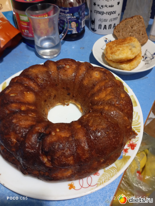 Банановый кекс на кефире в духовку всунула. Мне нравятся бананы в выпечке, душисто получается