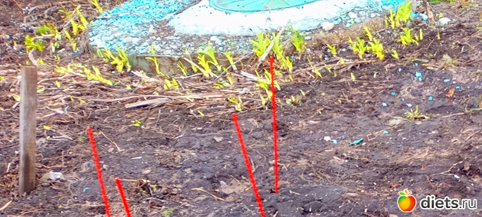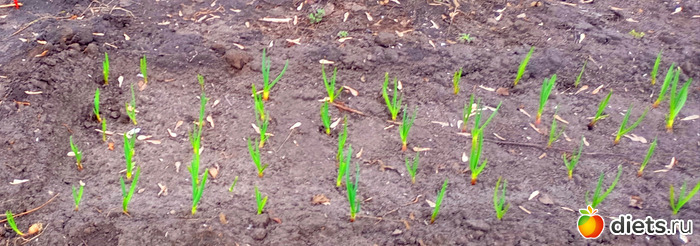 В чём-то у меня не хороший характер. Пришла, легла- не спится, не лежится: редис не посеян, а был в планах. Ну вот сдался он мне! Но так и пришлось встать! Встала, оделась, посеяла редис (2 упаковки) в теплице и между чесноком в открытый грунт, весь скороспелый. Через 3 - 3,5 недели должен редис поспеть, повыдергаю, место и освободится.