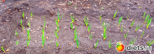 Стройные рядки озимого чеснока и неубиваемый лилейник