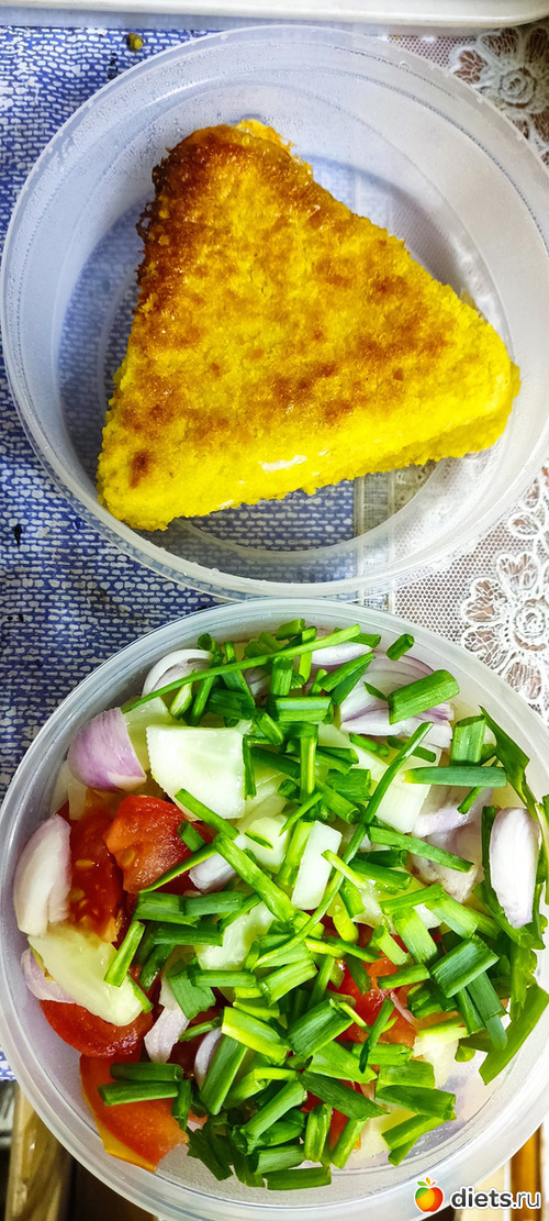 Обед (рыбные котлеты на фото две, но съела одну, не айс)