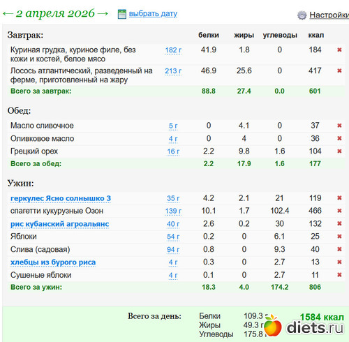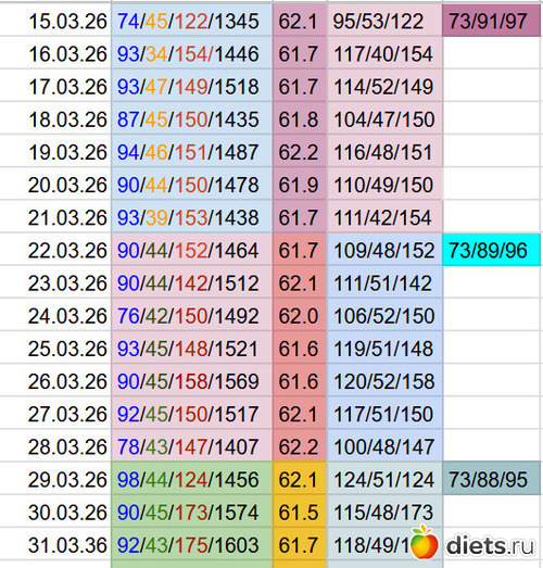 Продолжаю свой путь к нормальной калорийности дальше.) Если замеры уменьшатся или останутся прежними, в воскресенье добавлю еще 25гр углеводов.