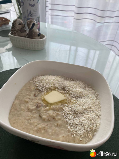 Для дополнительного вкуса и увеличения насыщенных жиров посыпала кашу кокосовой стружкой. Масла здесь всего 2 грамма.