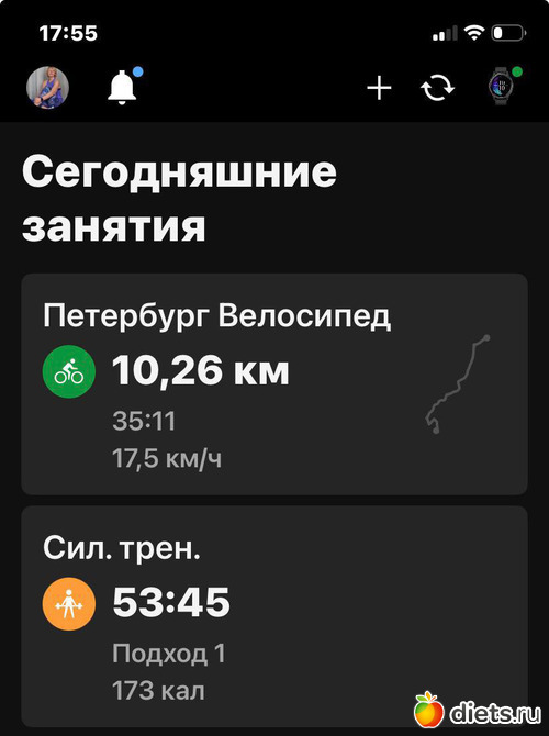 Мои занятия сегодня. Забываю часы включать! Вот и велик записала уже только в обратную сторону.