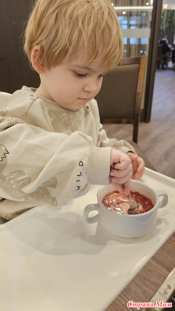 После его сна сходили на обед. Отлично покушали, все очень вкусно
