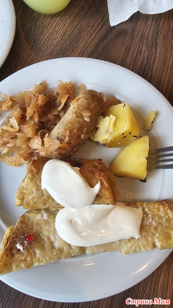 Бигос, картошка, блинчик с мясом и блинчик с яблоками