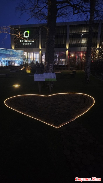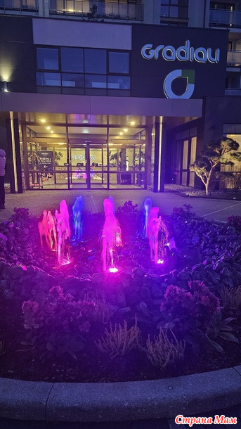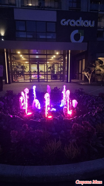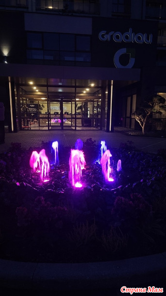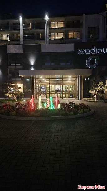 Поздно вечером еще вышли на кружочек со старшим сыном. Мама очень рекомендовала посмотреть фонтан у входа в санаторий