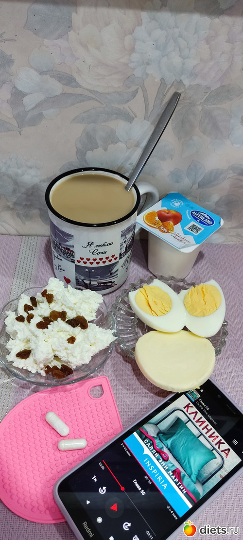 Завтрак. Книжку слушаю уже другую, не помню писала ли