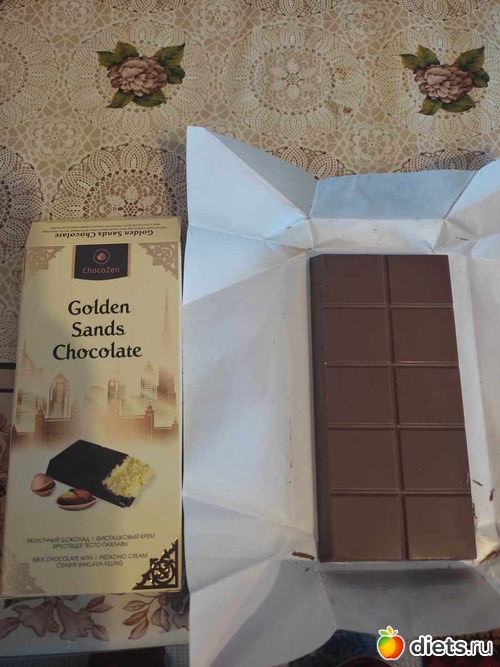 Привет Аня. Лежало у меня в холодильнике 2 плитки по 200 гр шоколада. Пришли на озон когда уже я начала стройнеть. С начинкой фисташковой, тестом катаифи. На манер дубайского. Сегодня с утра дома сидела, хозяйством занималась. И стала я наведываться к холодильнику, откусывать шоколад. Очнулась когда уже львиную часть прикончила. Следом дольку Милки доела последнюю. В общем завернула их в целофан, и убрала подальше, чтобы глаза мои их не видели.