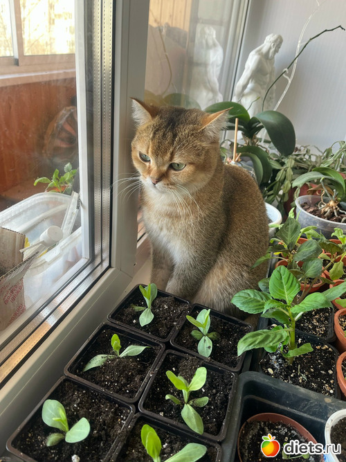 И напоследок - рыжий оккупант моей кровати - по утренней традиции, вспомнил, что рассада непроверенная стоит - проверил, остался не совсем доволен, и запоролся спать дальше на холодильник.