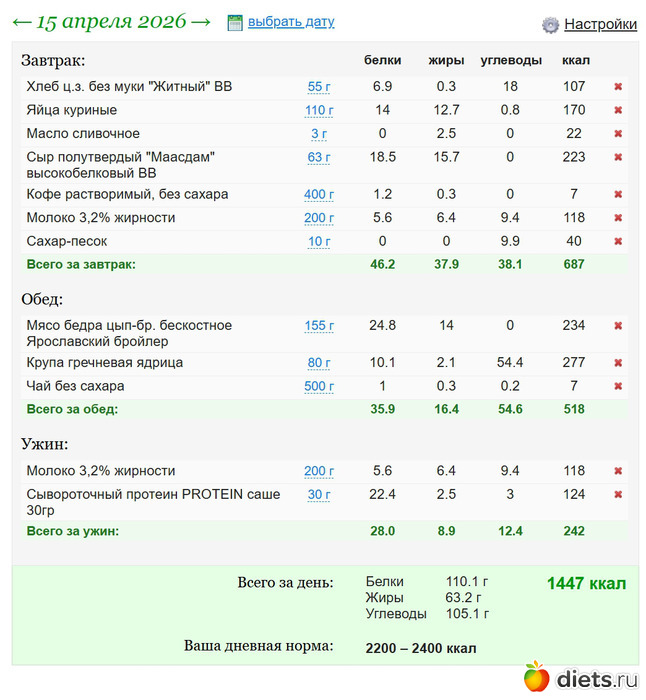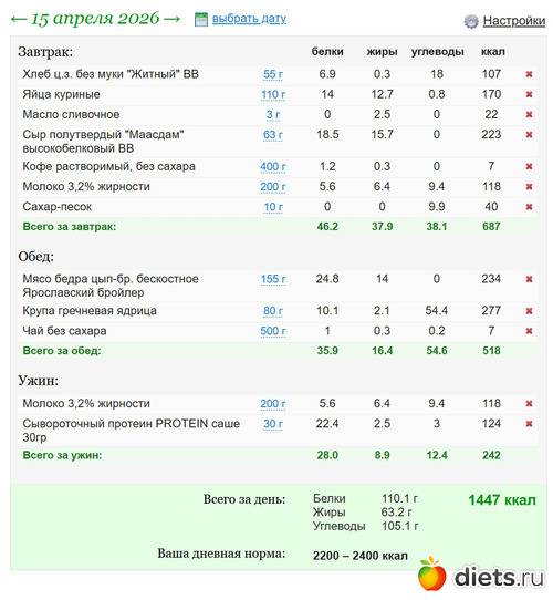 Diets.ru Еда за 15е апреля