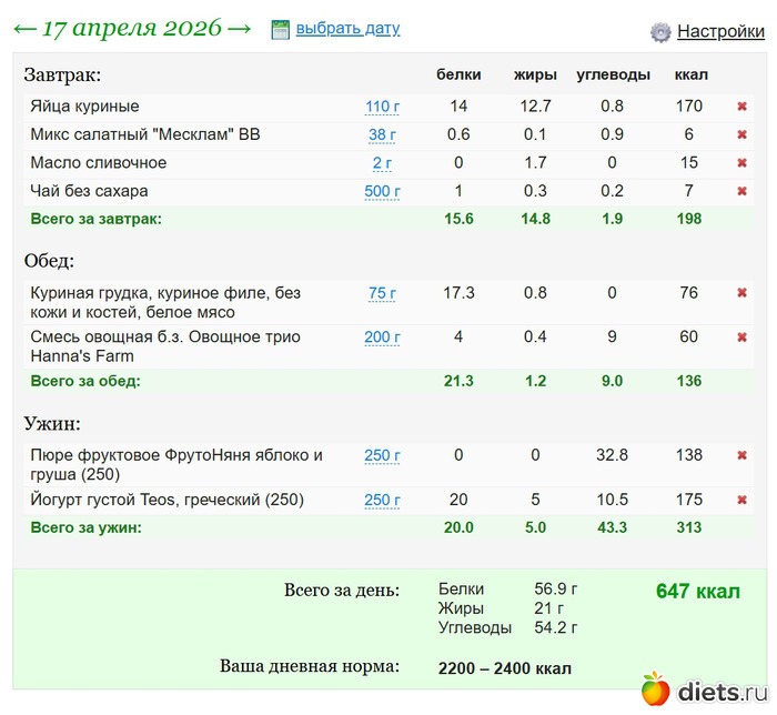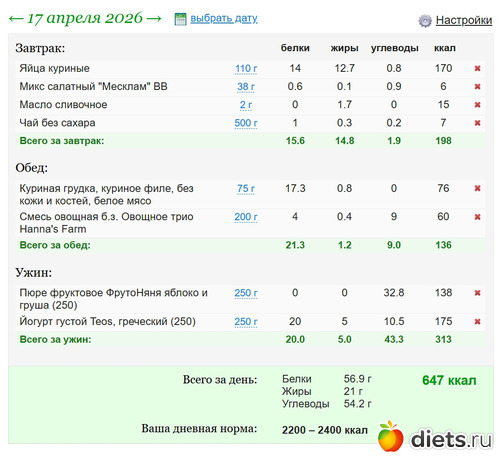 Diets.ru Еда за 17е апреля